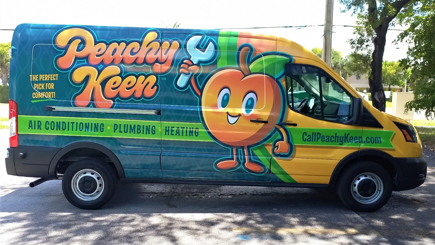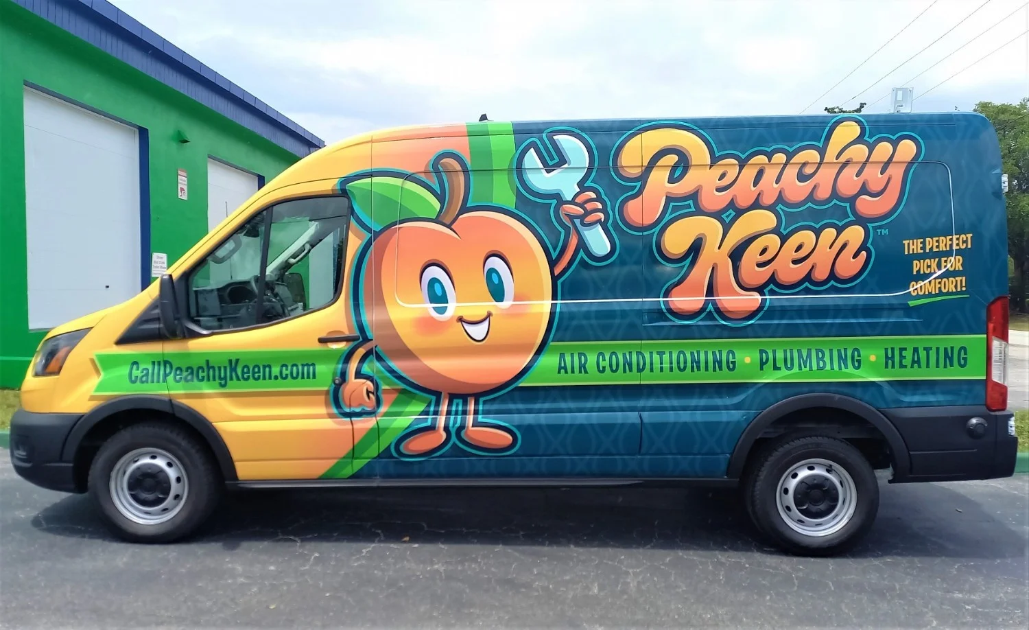 Peachy Keen needed a vibrant, eye-catching fleet wrap for their first six service vehicles to boost brand visibility across South Florida. The main objective was to create a colorful, “fun & happy” mobile billboard — something that would attract attention wherever the trucks parked or drove, helping drive foot traffic to their facility and increase brand recognition across their service area.